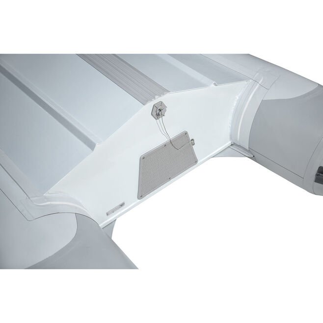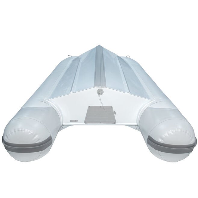 Precious Metal: The deep-V rigid hull and transom are made of heavy-gauge 6061-T-6 aluminum with a double floor supported by a stringer system that adds strength and rigidity. Corrosion resistance is further enhanced by stylish black or white powder-coating. Tubes are made from glued Orca 215 fabric and a heavy-duty rub strake provides protection from dock bumps.